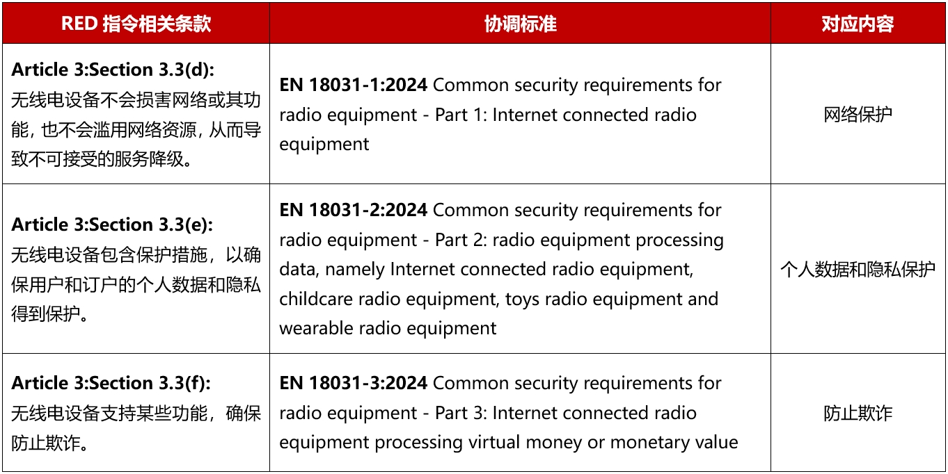 - 严格遵循RED指令,确保产品完全符合Article 3.3(d)(e)(f)条款的各项要求;