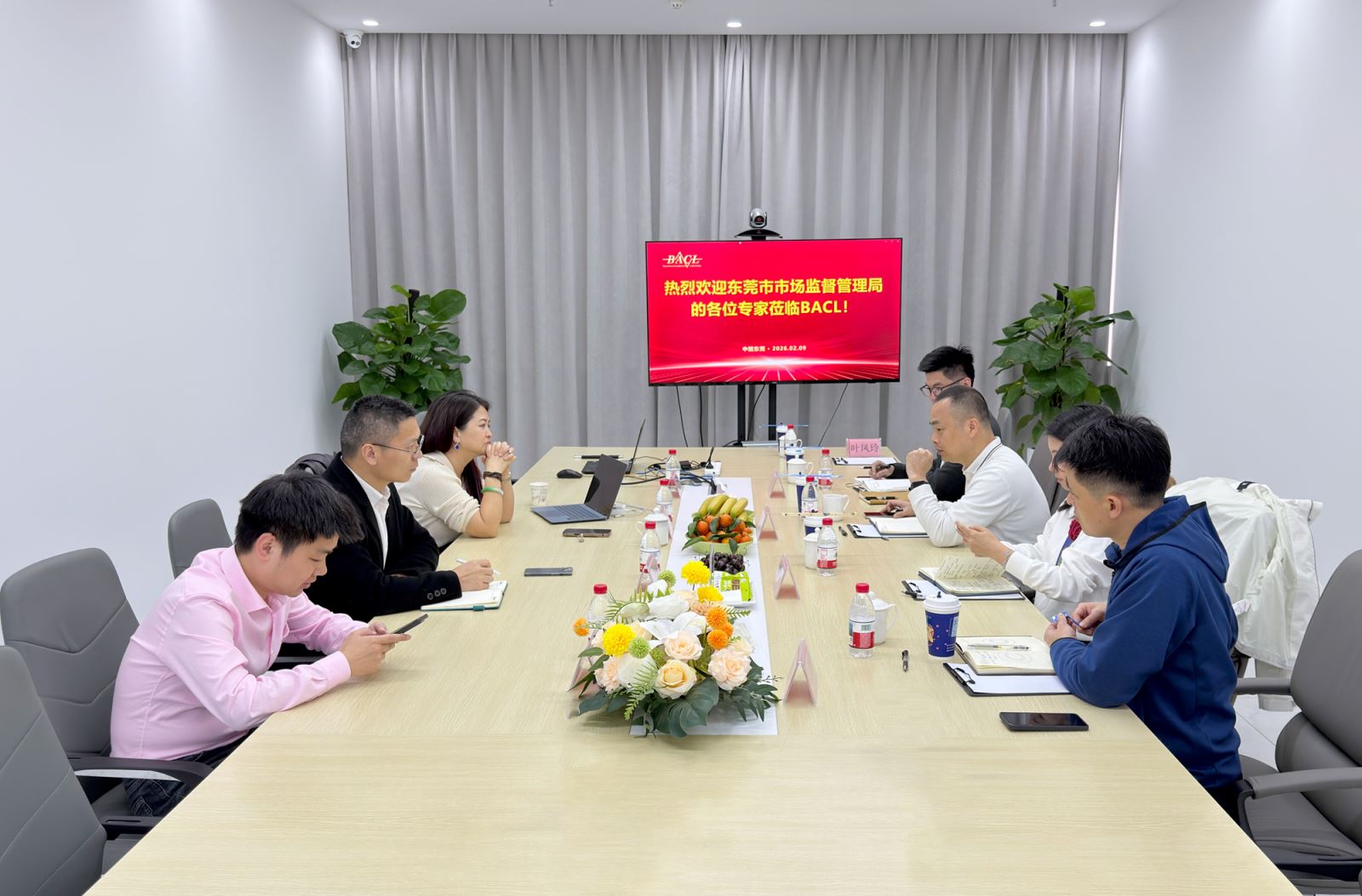 2026年2月9日,东莞市市场监督管理局四级调研员、认监科科长尹伟深,副科长叶凤玲,四级主任科员严伟铿、杨志坚以及市检验检测认证协会秘书长鲁伊玲一行莅临BACL走访调研,旨在加强政企沟通,深入了解检验检测行业现状,共同探索推动行业高质量发展的新路径。