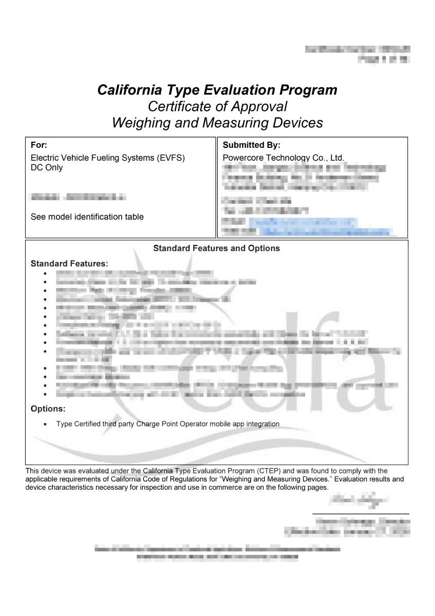 这是充电设备销售到加州/美国的必要认证,获得CTEP/NTEP证书,意味着充电设备满足加州/美国严苛的计量与监管要求,可合法合规进入公共充电市场,为后续全美市场布局奠定合规基础。