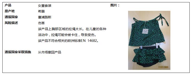 2020年9月纺织及服装产品召回信息