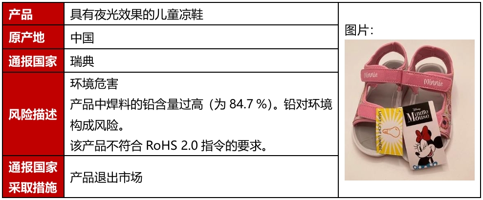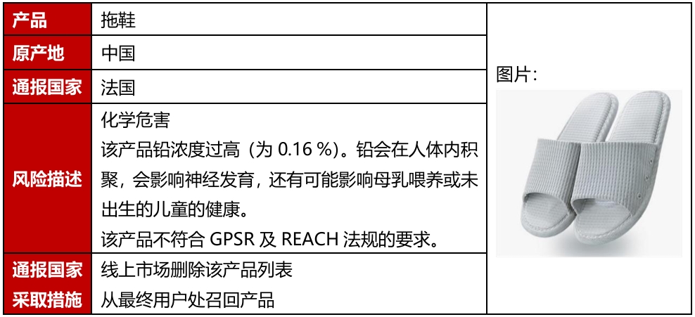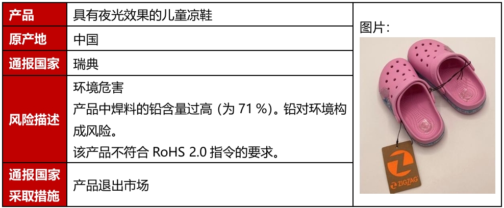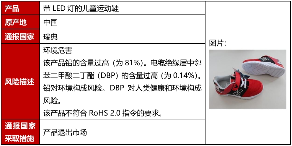 2025年11月,欧盟、美国、加拿大和澳洲共发生6例鞋类召回案例。该召回发生在欧盟,且是因为存在化学或环境危害被召回。