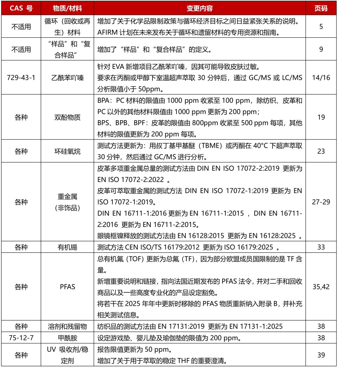 AFIRM发布2026版限用物质清单!