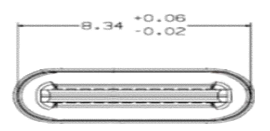 1. 如图1所示,外壳开口宽度应为8.34 mm,误差范围为-0.02 mm、+0.06 mm。