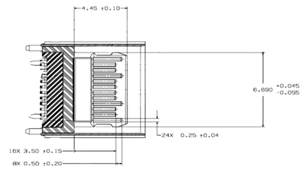 4. 如图3及图4所示,插座舌片(tongue)长度应为4.45 ± 0.10 mm。