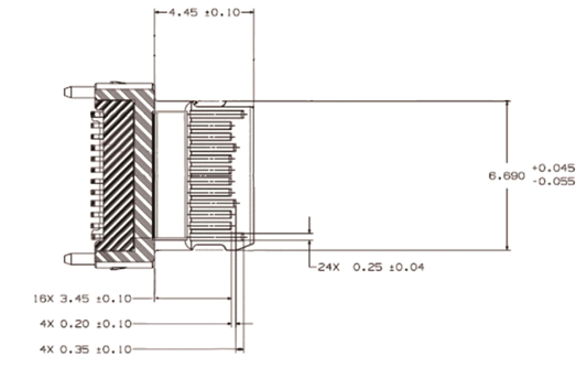 7. 如图3及图4所示,插座的各信号触点宽度应为0.25 ± 0.04 mm。
