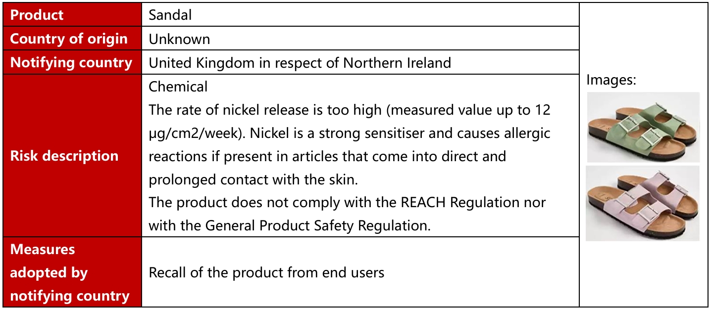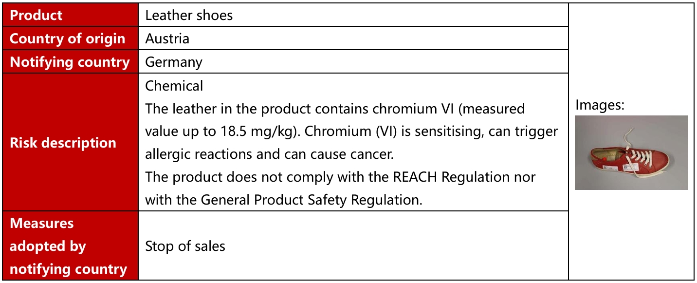 European Union, USA, Canada and Australia recall 3 batches of footwear products in December 2025. These recalls occurred in EU and are caused by chemical and environment problem.