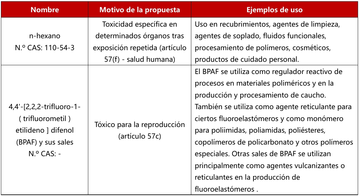 Helsinki, 15 de diciembre de 2025 - En su reunión de diciembre, el Comité de los Estados Miembros (MSC) de la ECHA acordó identificar el n-hexano como sustancia extremadamente preocupante (SVHC), lo que representa el primer caso neurotóxico de nivel equivalente de preocupación (ELOC). Otra sustancia, el 4,4 ' -[2,2,2-trifluoro-1-(trifluorometil)etilideno]difenol y sus sales, se identificó sin la participación del comité.