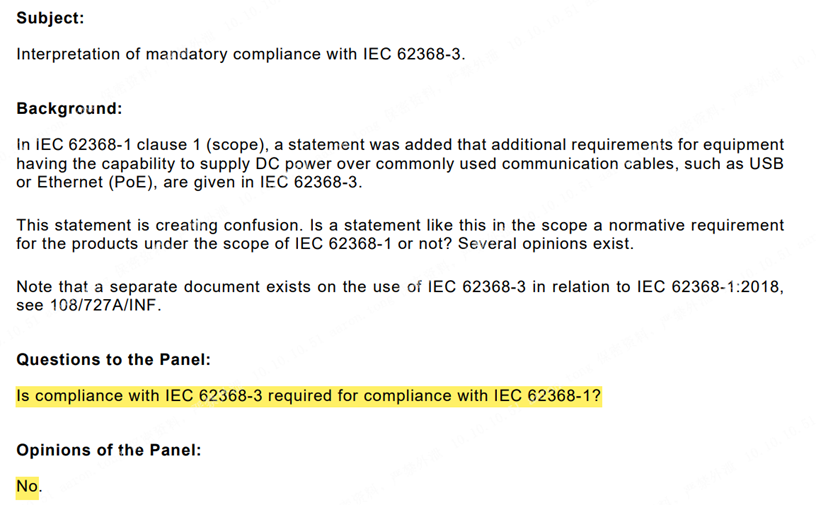 因此,IEC 62368-3:2017在发布没多久,标准制定者和应用者都认为它不需要强制执行。也就是说这个标准在发布初期,就进入被废止的讨论中了。