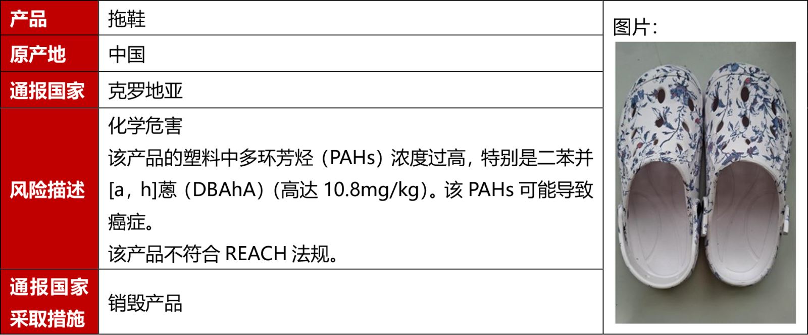 2025年8月,欧盟、美国、加拿大和澳洲共发生2例鞋类召回案例。这些召回发生在欧盟,且是因为存在化学危害被召回的。