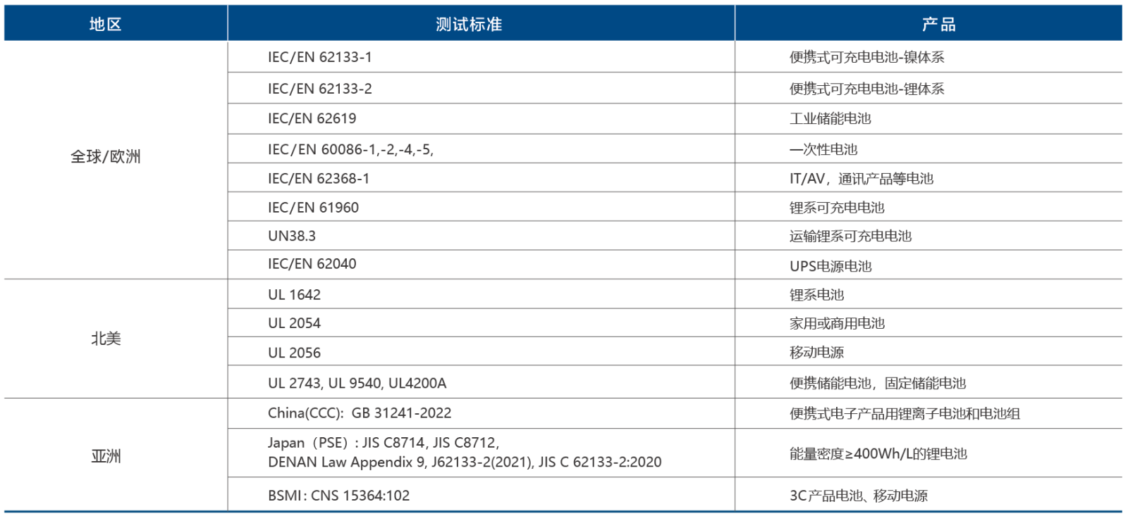 BACL电池实验室专注于研究世界各国的新能源电池标准,时刻关注行业动态与标准更新,并与国内外知名机构保持良好的合作关系。实验室根据最新的标准要求,配备了行业领先的检测设备,以确保能满足广大客户对新能源电池检测的各种需求,最大限度地为客户缩短国际认证(CB、BSMI、PSE、UL、UN38.3、CE欧盟电池指令等)周期,助力客户轻松便捷地获得进入国际市场的通行证,欢迎联系我们!