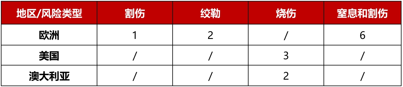 2025年11月,欧洲、美国、澳大利亚共发生14起纺织及服装产品召回案例,其中有7例产自中国。召回信息统计及典型案例归纳如下: