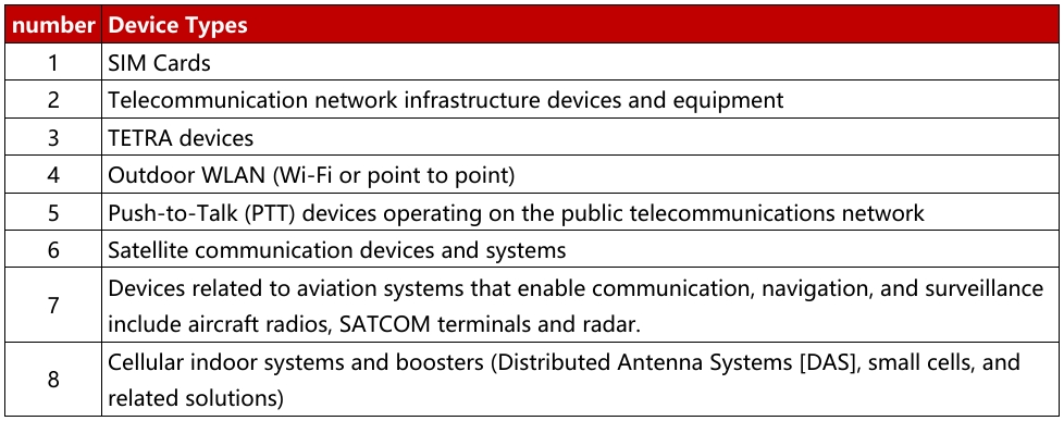 4. Ensure the product complies with the technical standard included in the technical regulation and add any additional requirements for the devices, such as service provision licenses, frequency usage licenses, or device registration.