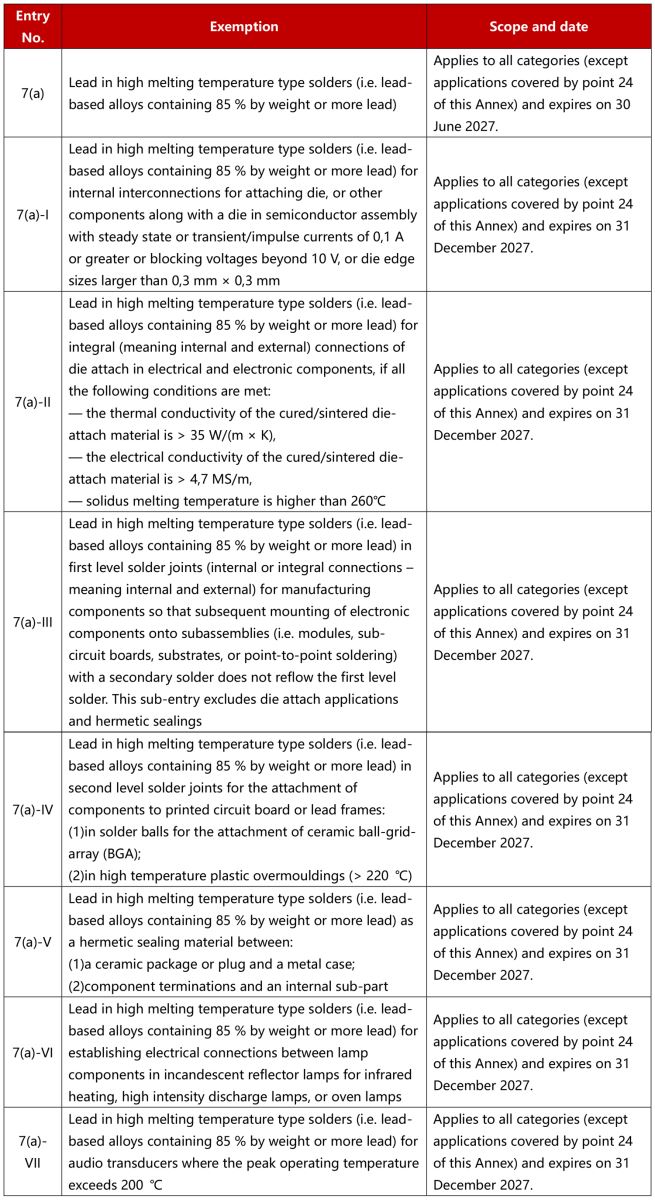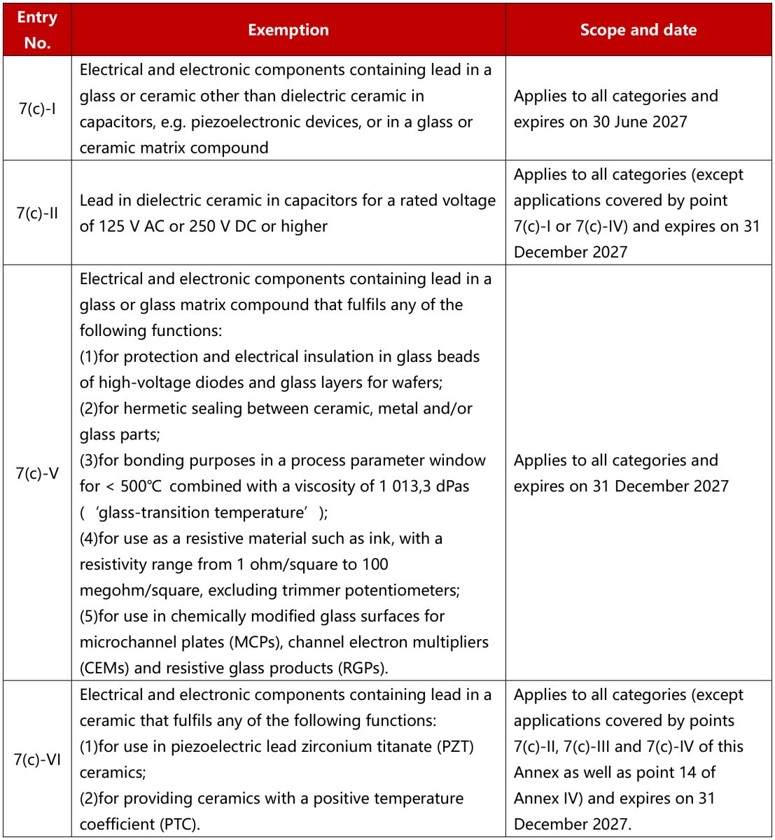 On November 21, 2025, the Official Journal of the European Union has published commission delegated directives (EU) 2025/1802, (EU) 2025/2363, (EU) 2025/2364 to amend certain lead exemption in Annex III under directive 2011/65/EU (RoHS). These directives shall enter into force on the twentieth day following that of its publication in the Official Journal of the European Union.