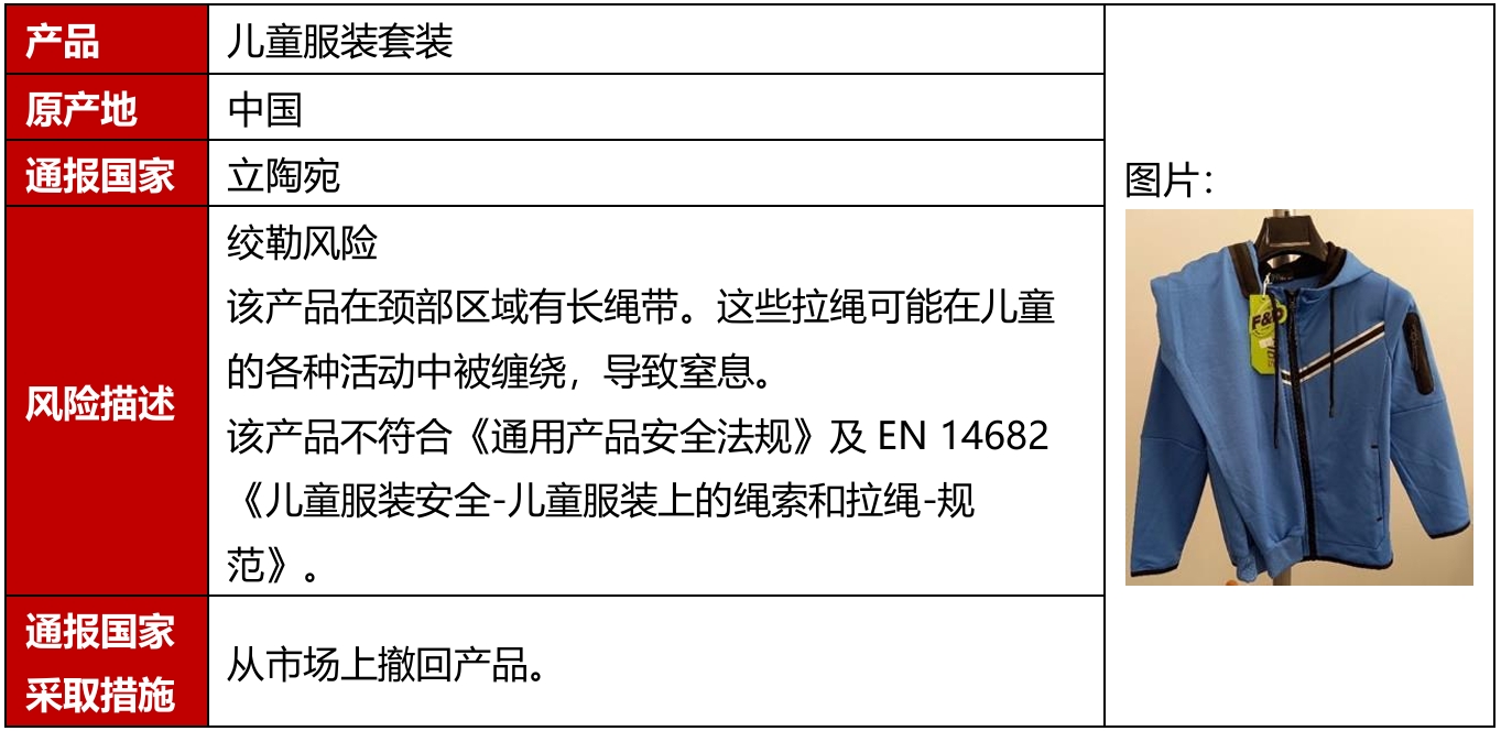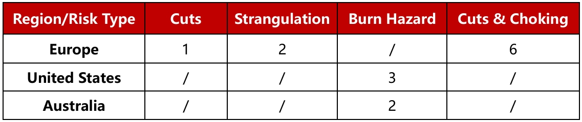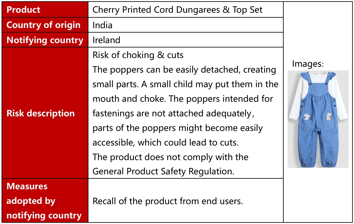 In November 2025, a total of 14 textile and clothing product recalls were reported in Europe, the United States, and Australia, including 7 products manufactured in China. The recall information and typical cases are summarized as follows: