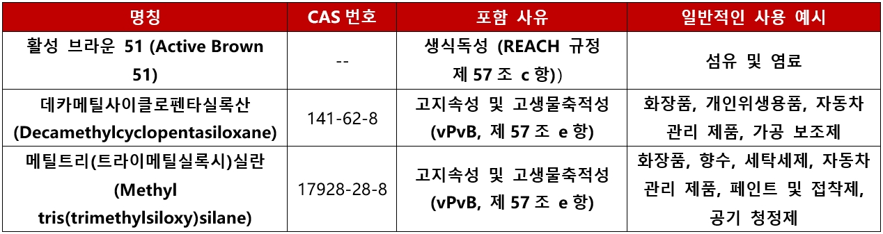 2025년 6월 25일, 유럽화학물질청(ECHA)은 제안된 3가지 물질을 REACH 고위험 우려물질(SVHC) 후보 목록에 공식적으로 추가했습니다. 이로써 해당 목록은 총 250개 항목으로 확장되었습니다。