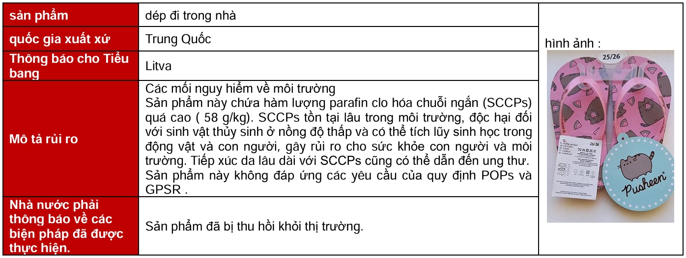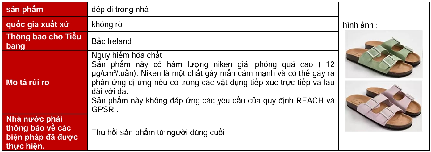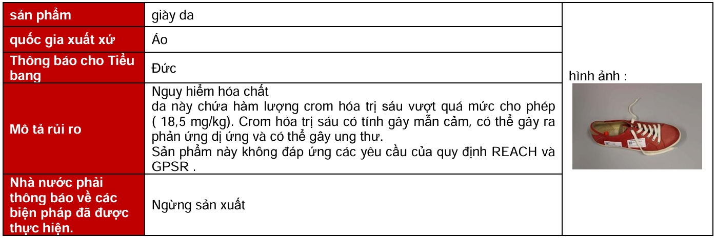 Vào tháng 12 năm 2025 , đã có ba đợt thu hồi giày dép tại EU, Mỹ, Canada và Úc . Các đợt thu hồi này diễn ra tại EU và nguyên nhân là do nguy cơ tiềm ẩn về hóa chất hoặc môi trường .